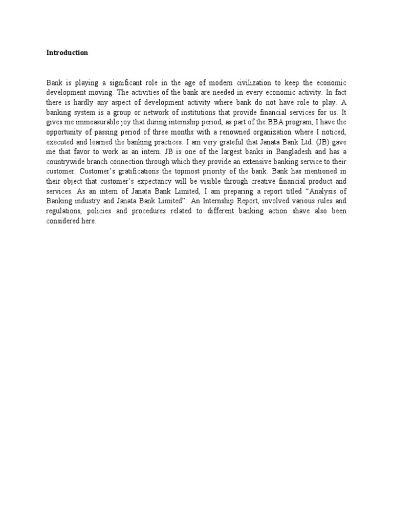 services. As an intern of Janata Bank Limited, I am preparing a report titled “Analysis of