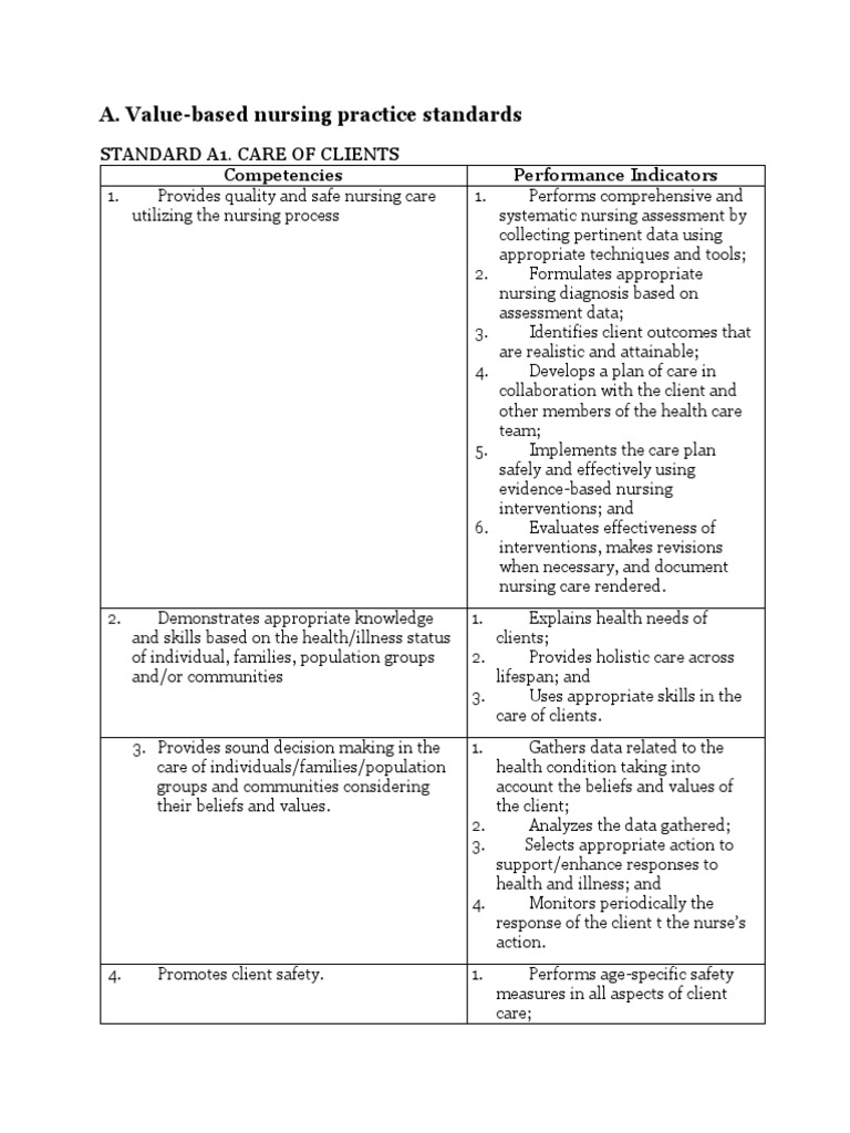 Value-based nursing practice standards