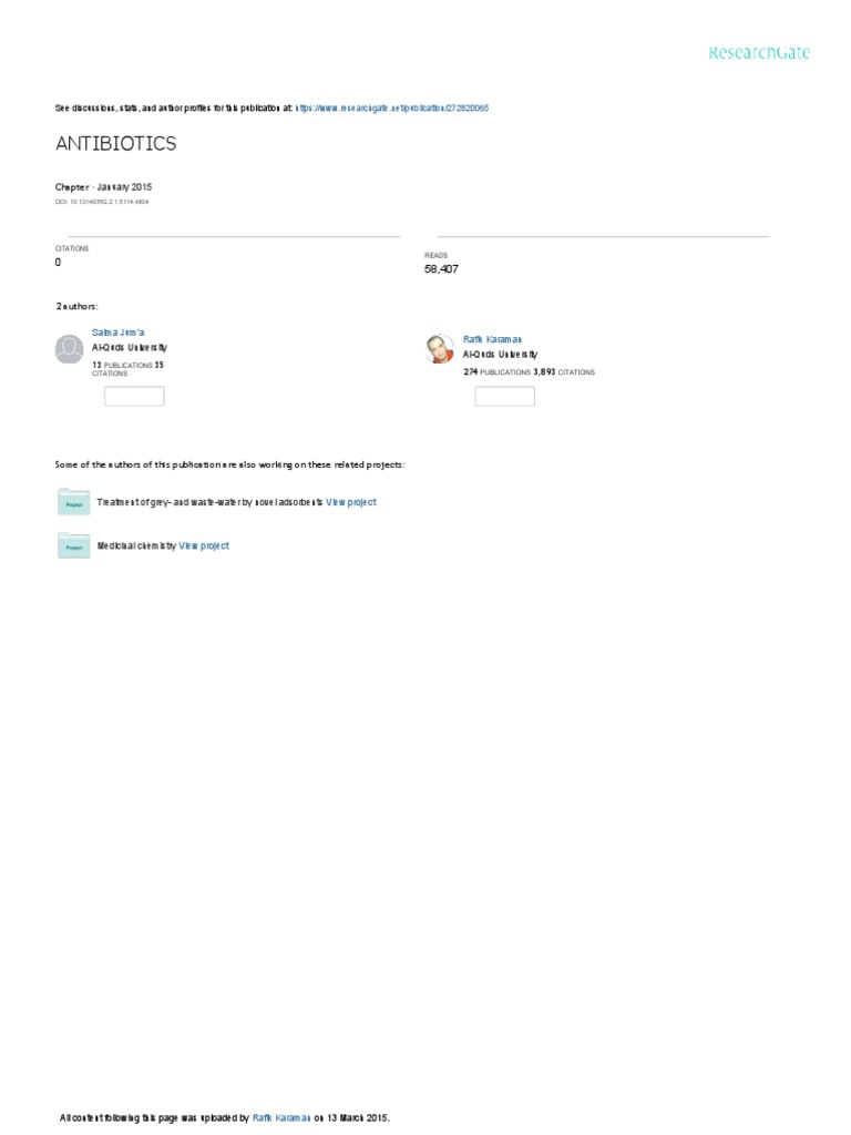 [62] Cunha, B. A. (2001) Antibiotic side effects. Medical Clinics of North America, 85(1),