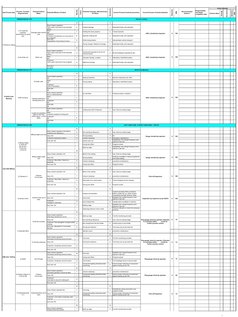 Opn Process Seq Potential Effects of Failure Current Process Controls prevention Current Process Controls detection and target