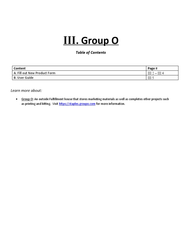 o *New Product Form: fill out a new product form to alert Group O that materials will be arriving (see