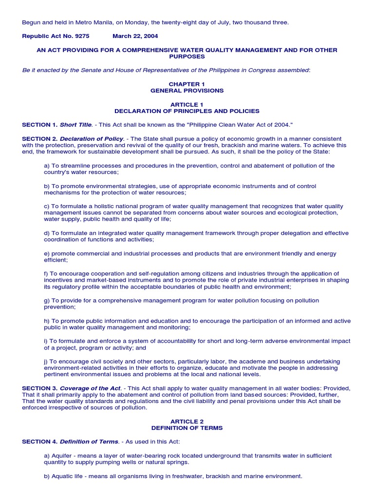 SECTION 1. Short Title. - This Act shall be known as the "Philippine Clean Water Act of 2004."