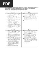 experiences from various sources, such as competitors. Threats are external factors that limit or