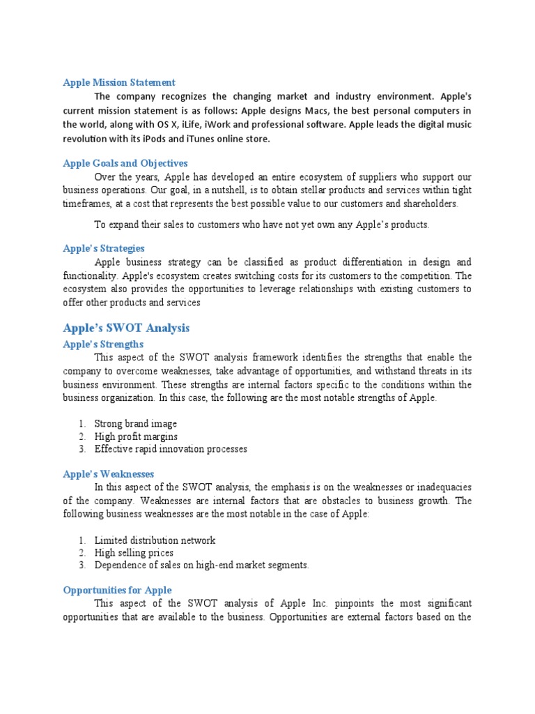 This aspect of the SWOT analysis of Apple Inc. pinpoints the most significant
