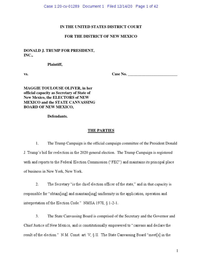 (“TRO”) to enjoin the State of New Mexico, the Electors and the Secretary of State (collectively,