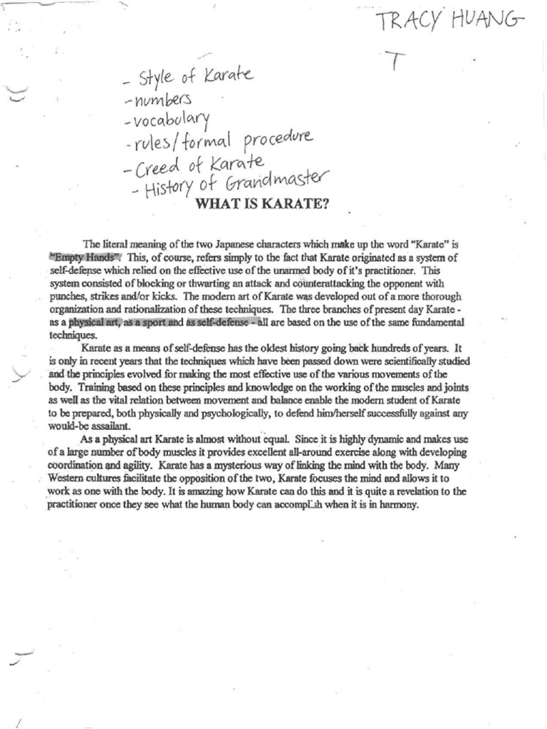 punches, strikes and/or kicks. The mode art of Karate was developed out of a more thorough