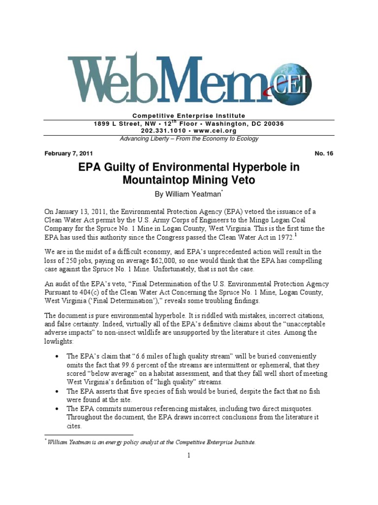 On January 13, 2011, the Environmental Protection Agency (EPA) vetoed the issuance of a