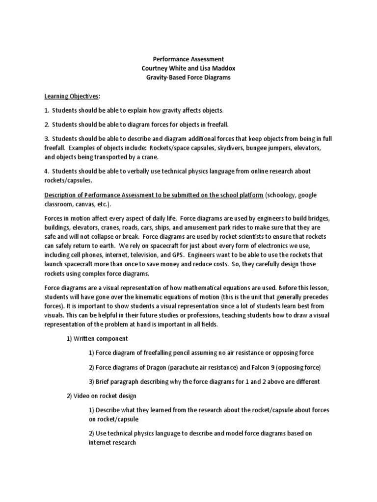 being in free fall. Throughout the performance assessment, students will use technical physics language