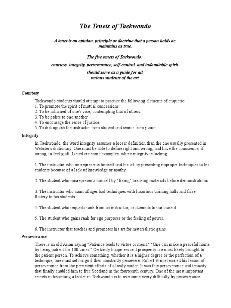 The Tenets of Taekwondo