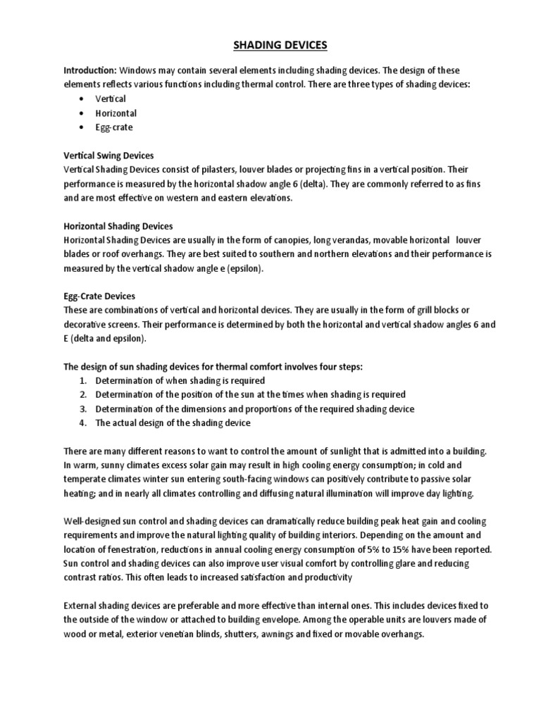elements reflects various functions including thermal control. There are three types of shading devices: