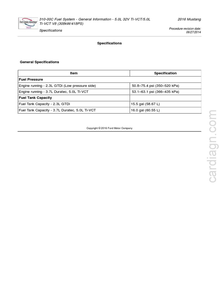 310-00C Fuel System - General Information - 5.0L 32V Ti-VCT/5.0L 2016 Mustang