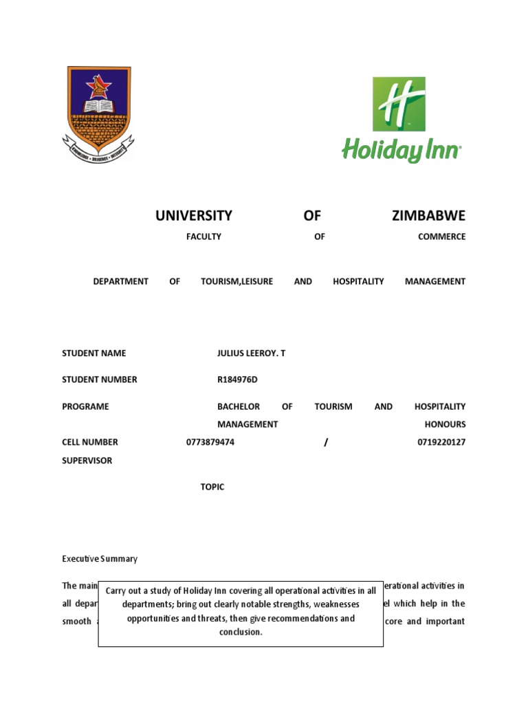 research undertaken on Holiday inn Harare.