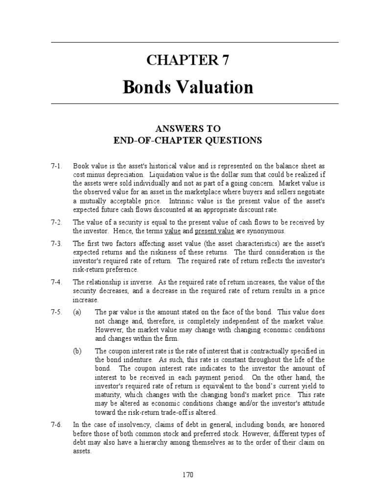 Bonds Valuation: Answers To End-Of-Chapter Questions