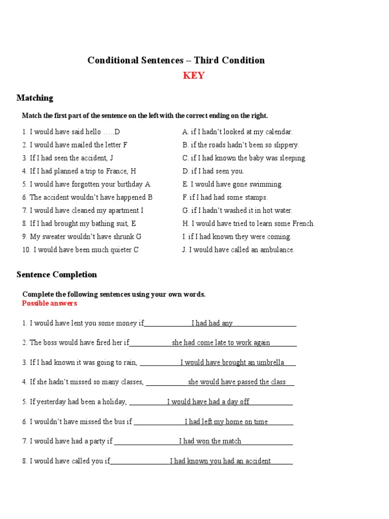 Conditional Sentences – Third Condition