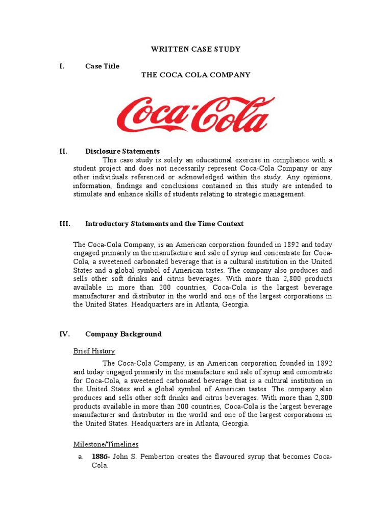 Coca Cola involved manufacturing and selling of beverage concentrates, syrups,