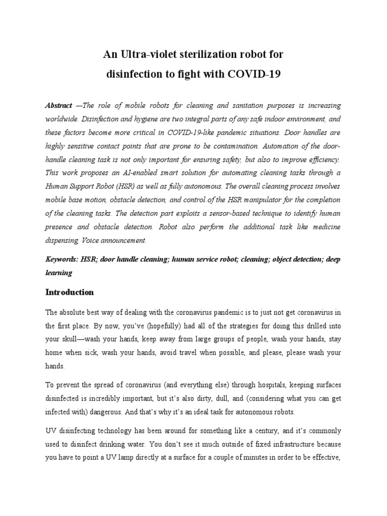 1. An Ultra-violet sterilization robot for Pacharawan Chanprakon ; Tapparat 2019