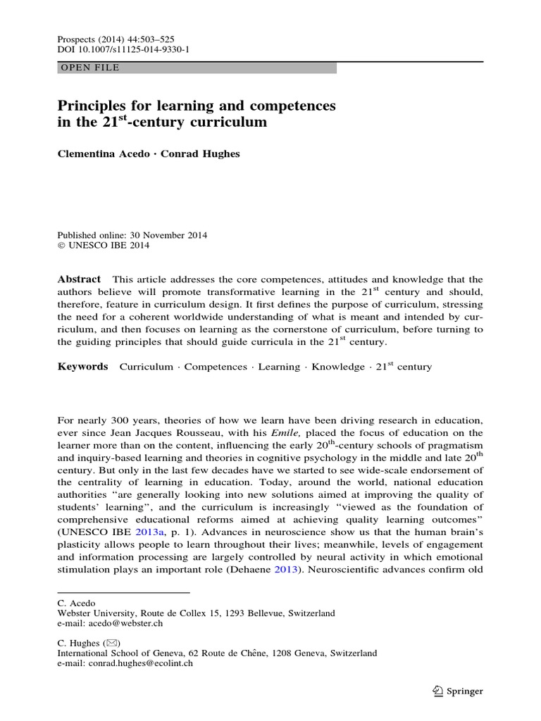 Principles For Learning and Competences in The 21 - Century Curriculum