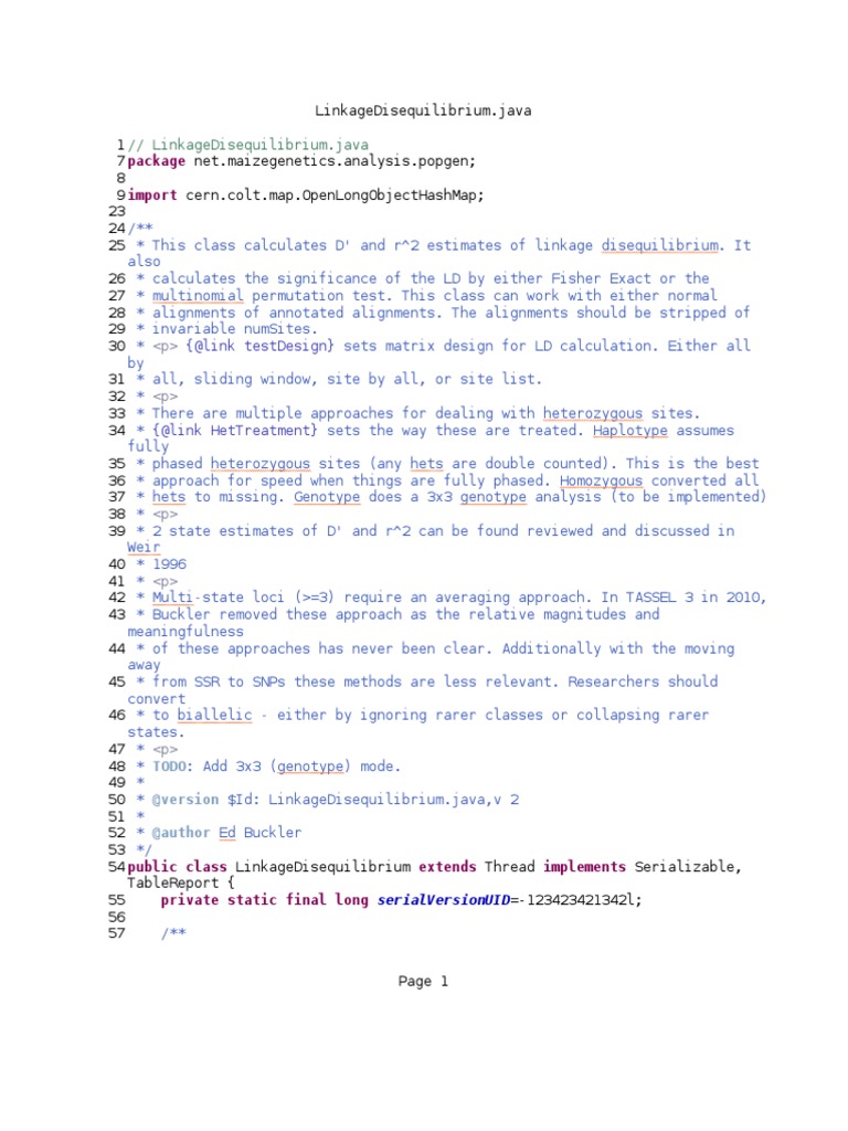 54 public class LinkageDisequilibrium extends Thread implements Serializable,