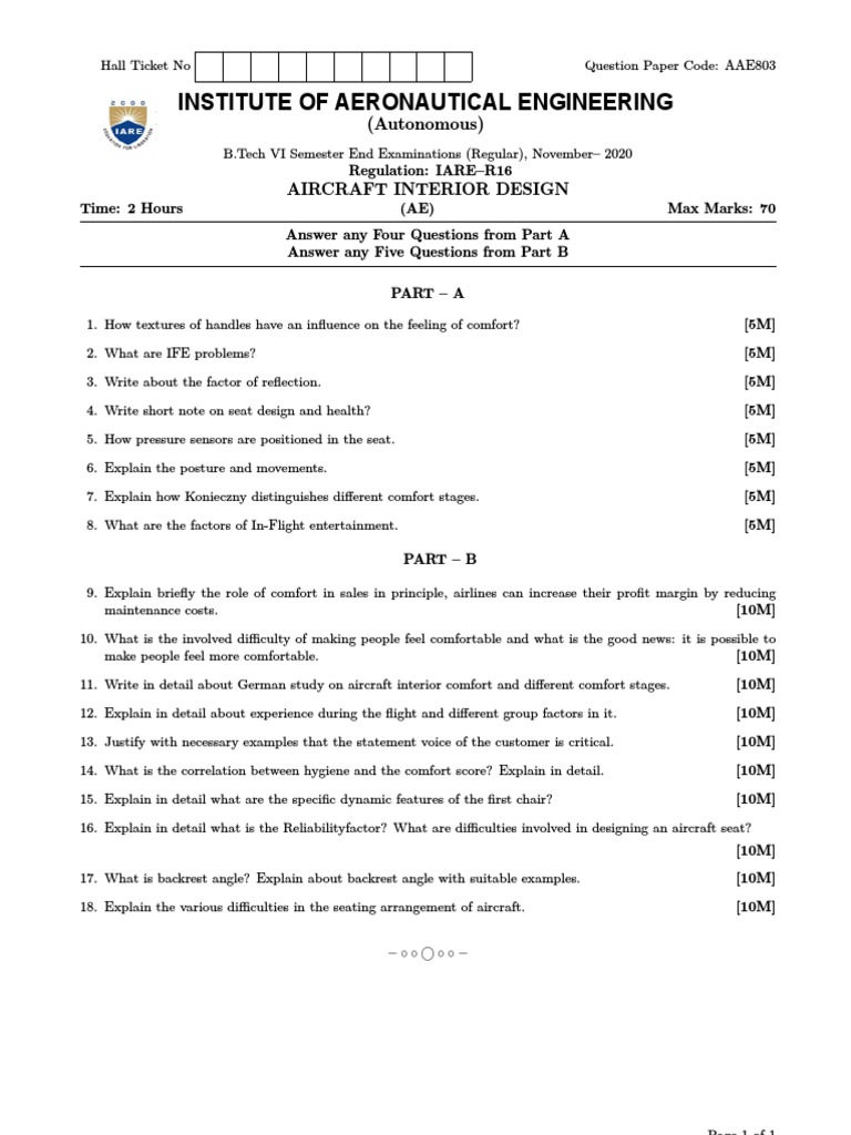 18. Explain the various difficulties in the seating arrangement of aircraft. [10M]