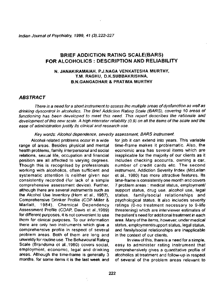 BARS - A RATING SCALE FOR ALCOHOLICS