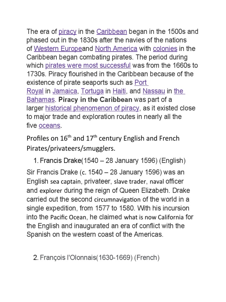 Royal in Jamaica, Tortuga in Haiti, and Nassau in the