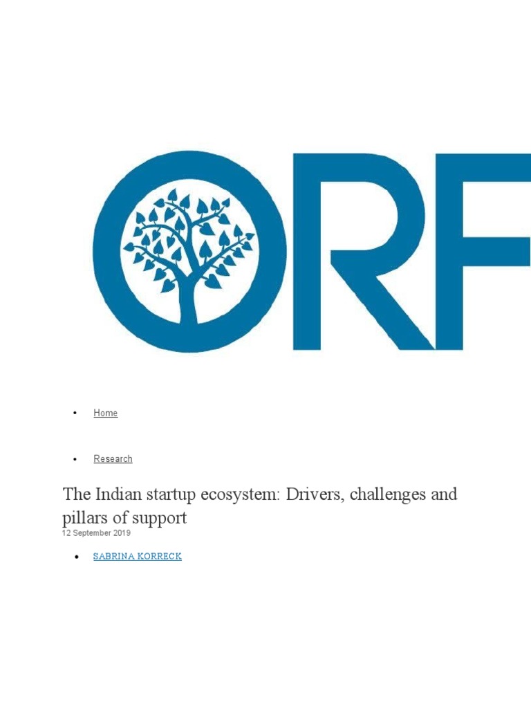 The Indian Startup Ecosystem: Drivers, Challenges and Pillars of Support