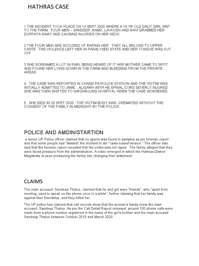 1 THE INCIDENT TOOK PLACE ON 14 SEPT 2020 WHERE A 19 YR OLD DALIT GIRL WNT