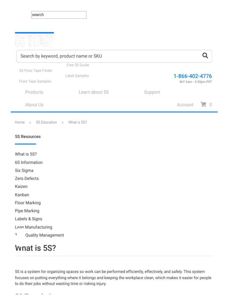 5S is a system for organizing spaces so work can be performed efficiently, effectively, and safely. This system