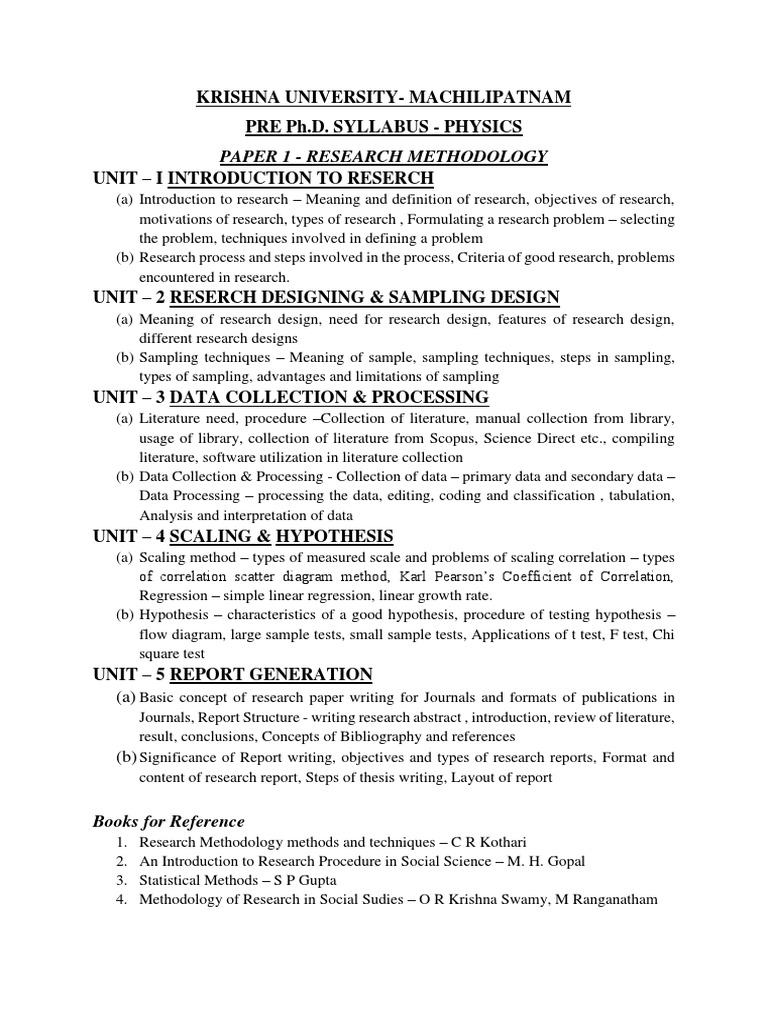 COURSE: PRE Ph.D EXAMINATION SYLLABUS - PHYSICS