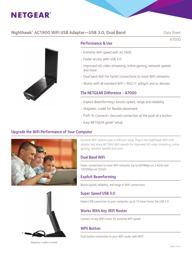 Nighthawk® AC1900 WiFi USB Adapter—USB 3.0, Dual Band Data Sheet