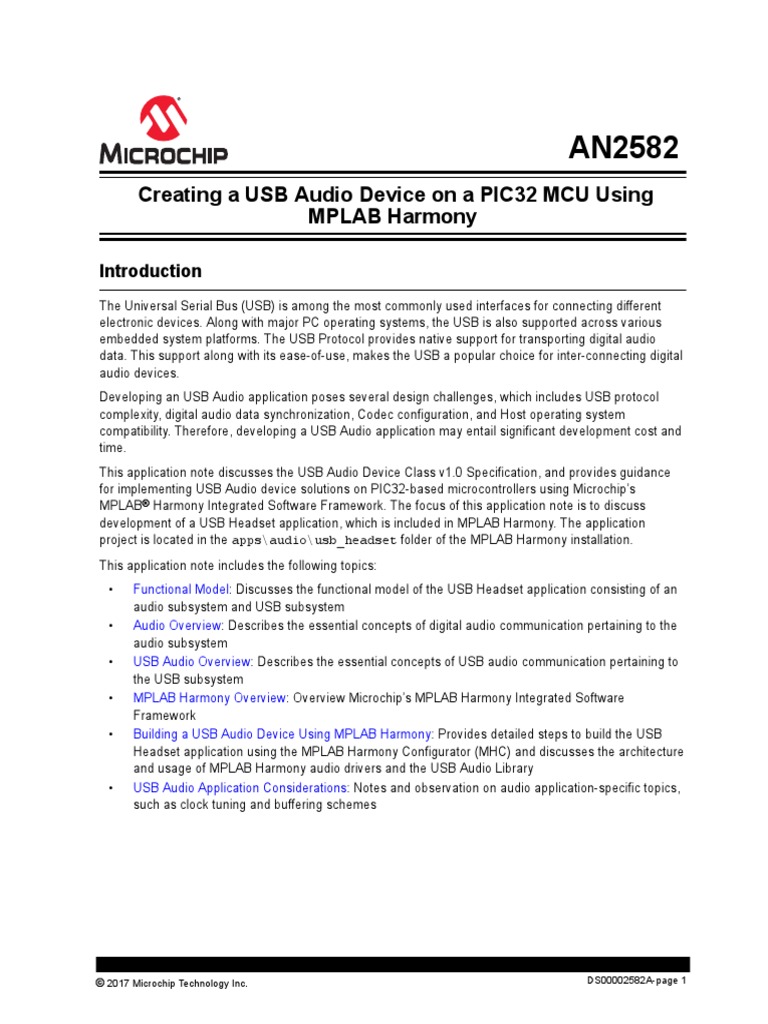 development of a USB Headset application, which is included in MPLAB Harmony. The application
