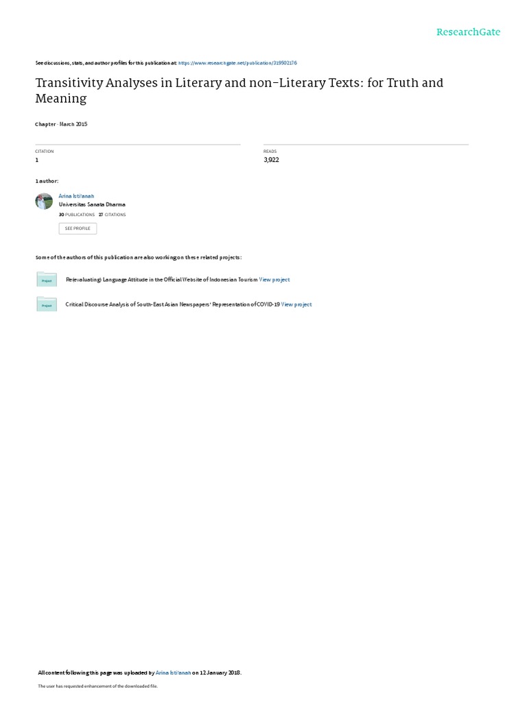 Transitivity is applicable to observe both literary and non-literary texts and invites scholars to