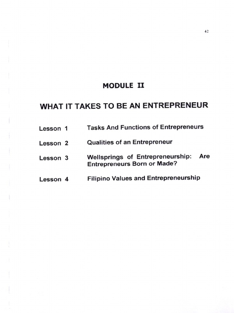 Module I zeroes in on the entrepreneur as a person. It attempts to answer a