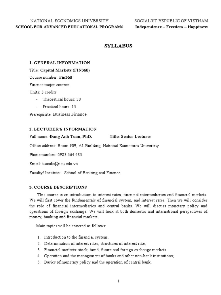 NATIONAL ECONOMICS UNIVERSITY SOCIALIST REPUBLIC OF VIETNAM