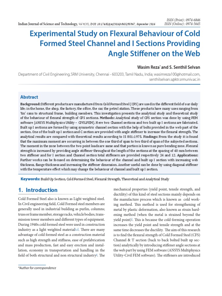 0.198 3.692 4. Ajay PS, Joanna PS. Flexural behaviour of cold formed