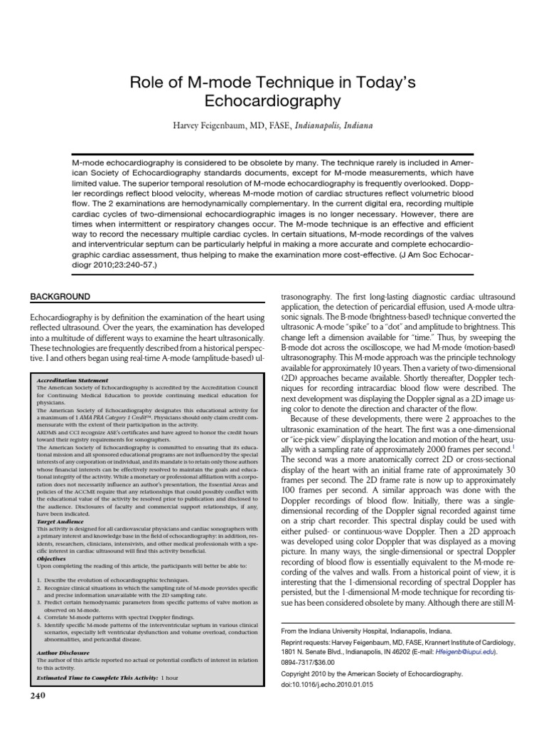 M-mode echocardiography is considered to be obsolete by many. The technique rarely is included in Amer-