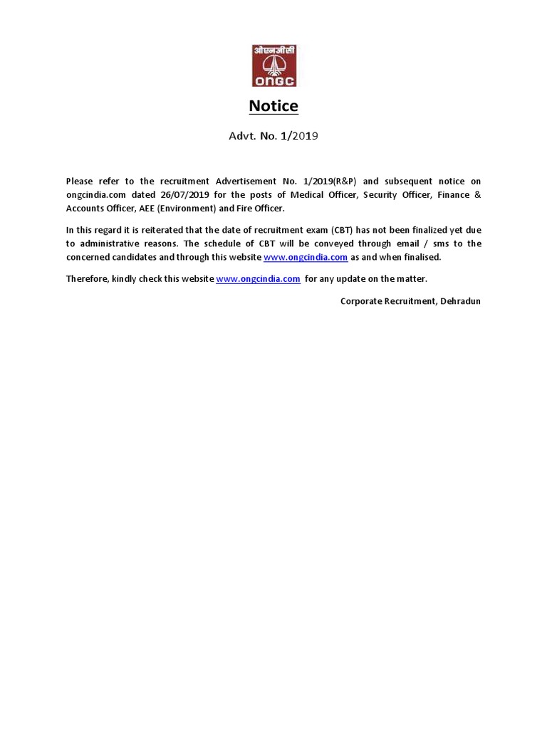concerned candidates and through this website www.ongcindia.com as and when finalised.