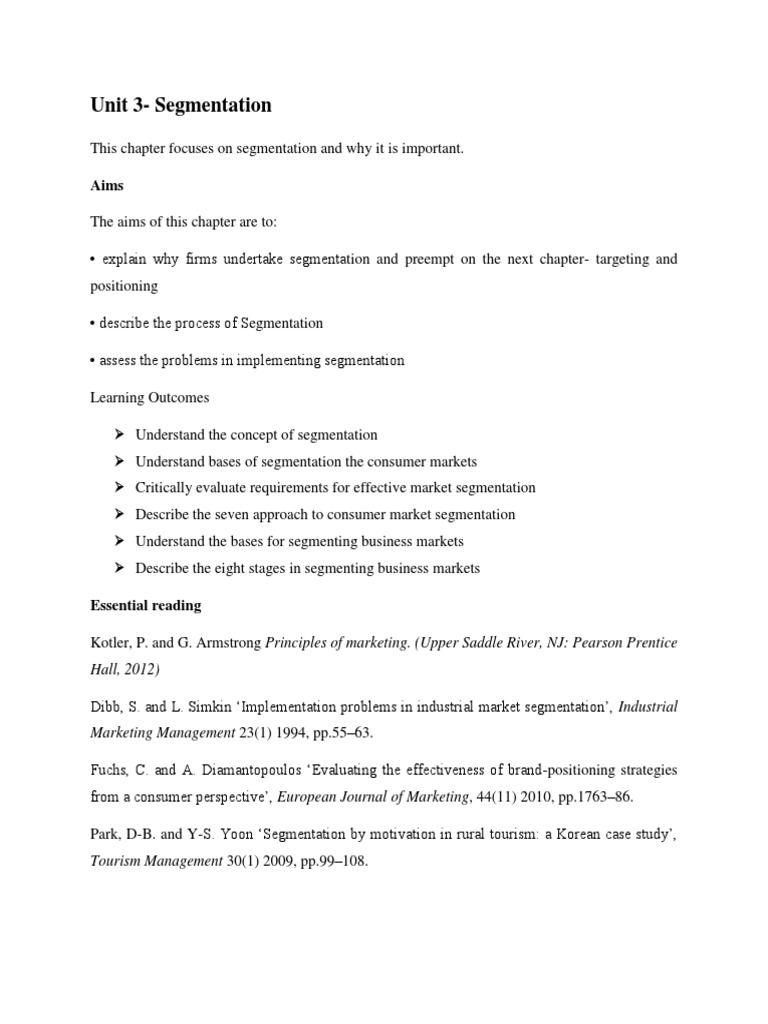and wants will be satisfied adequately, and this process is known as segmentation. Kotler &