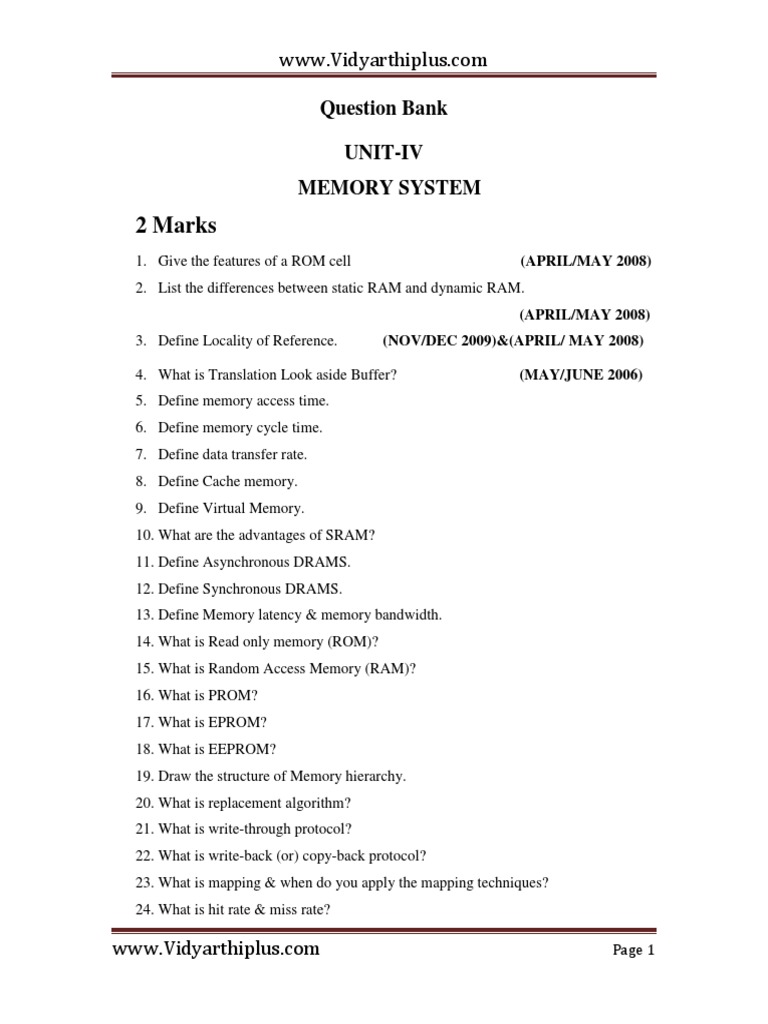 memory system. (APRIL/MAY 2008)