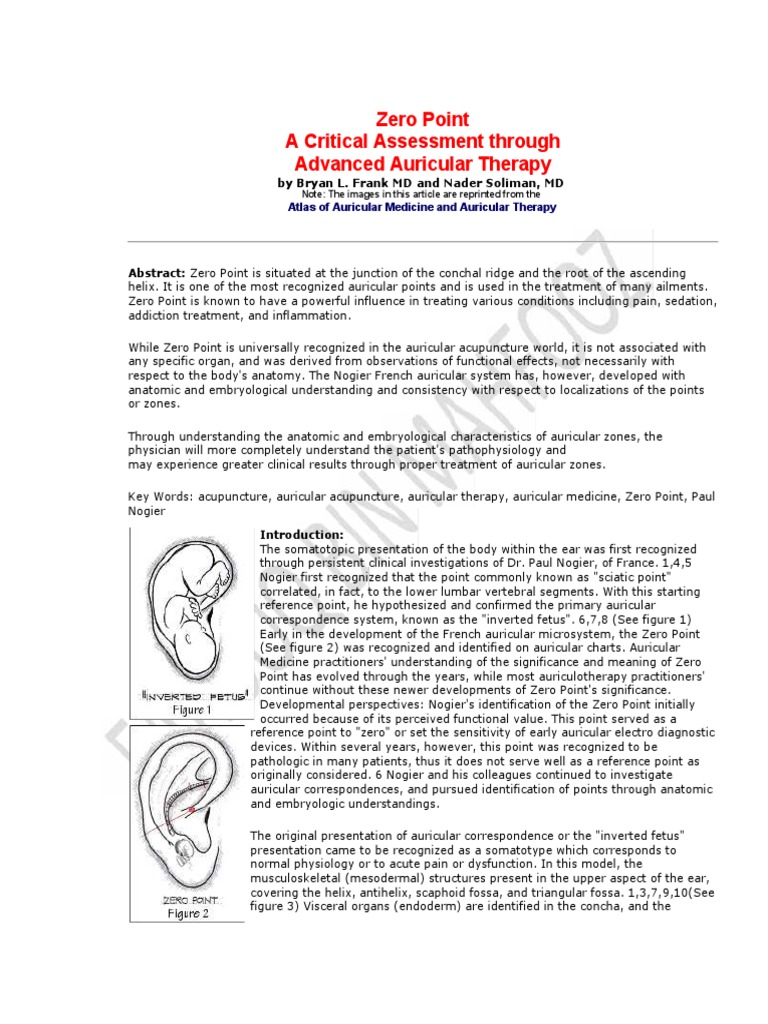 Key Words: acupuncture, auricular acupuncture, auricular therapy, auricular medicine, Zero Point, Paul