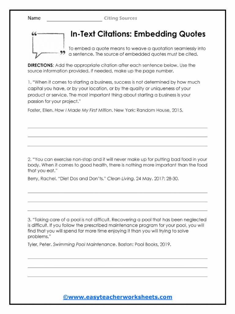 DIRECTIONS: Add the appropriate citation after each sentence below. Use the