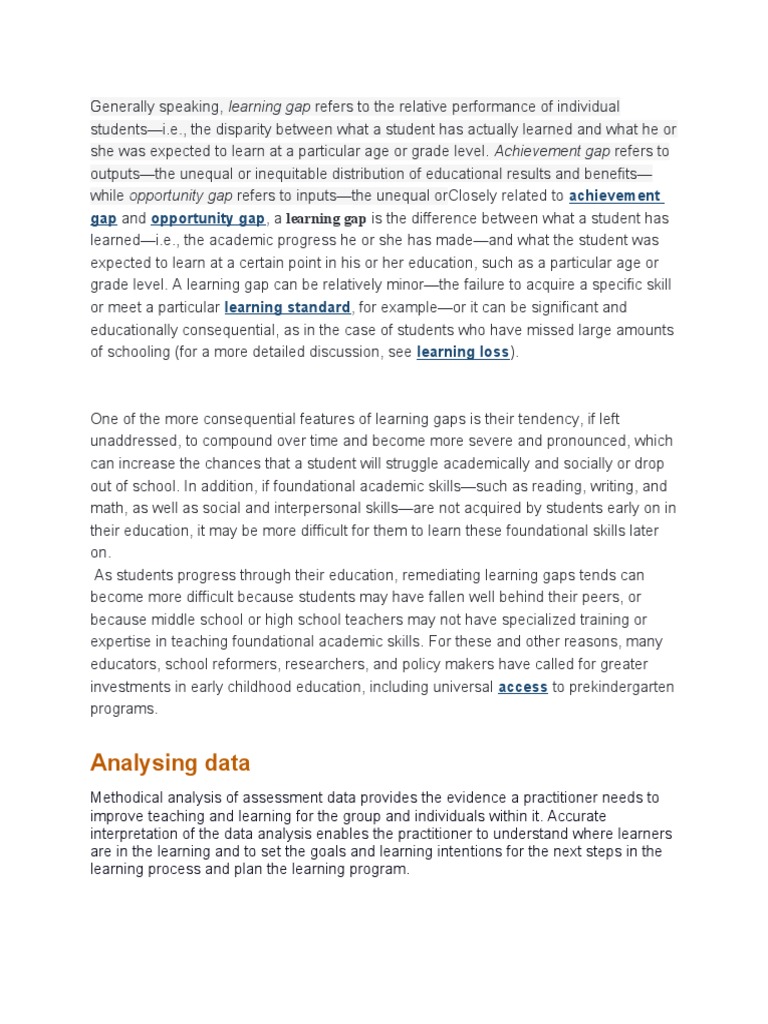gap and opportunity gap, a learning gap is the difference between what a student has
