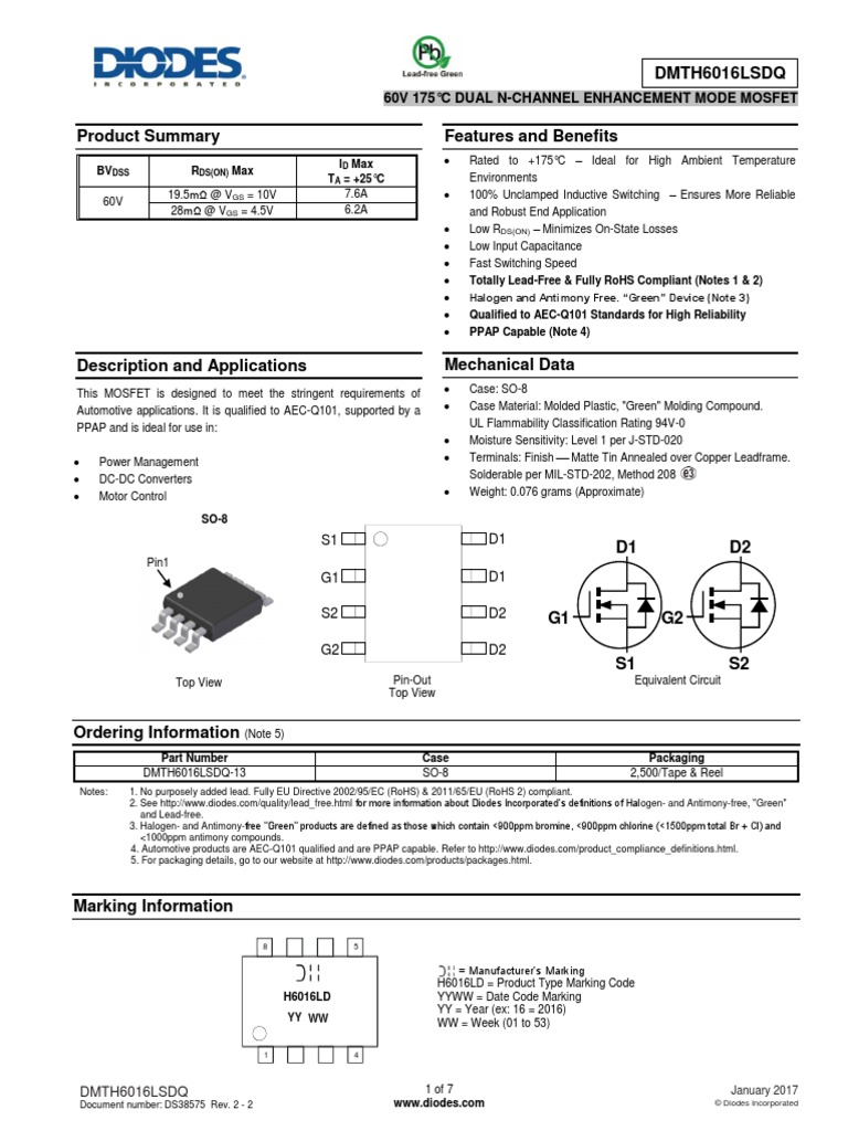 DMTH6016LSDQ: 60V 175°C Dual N-Channel Enhancement Mode Mosfet