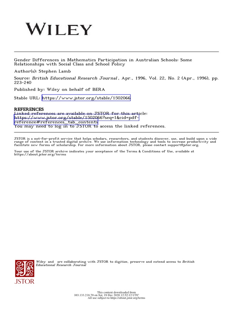 equally by all groups of girls and across all schools. Gender differences in mathematics