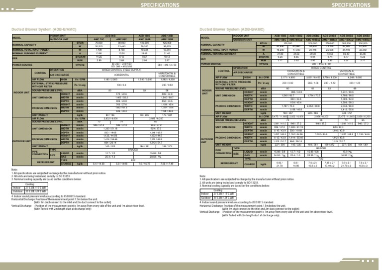 3. Nominal cooling capacity are based on the conditions below: 1. All specifications are subjected to change by the manufacturer without prior notice.