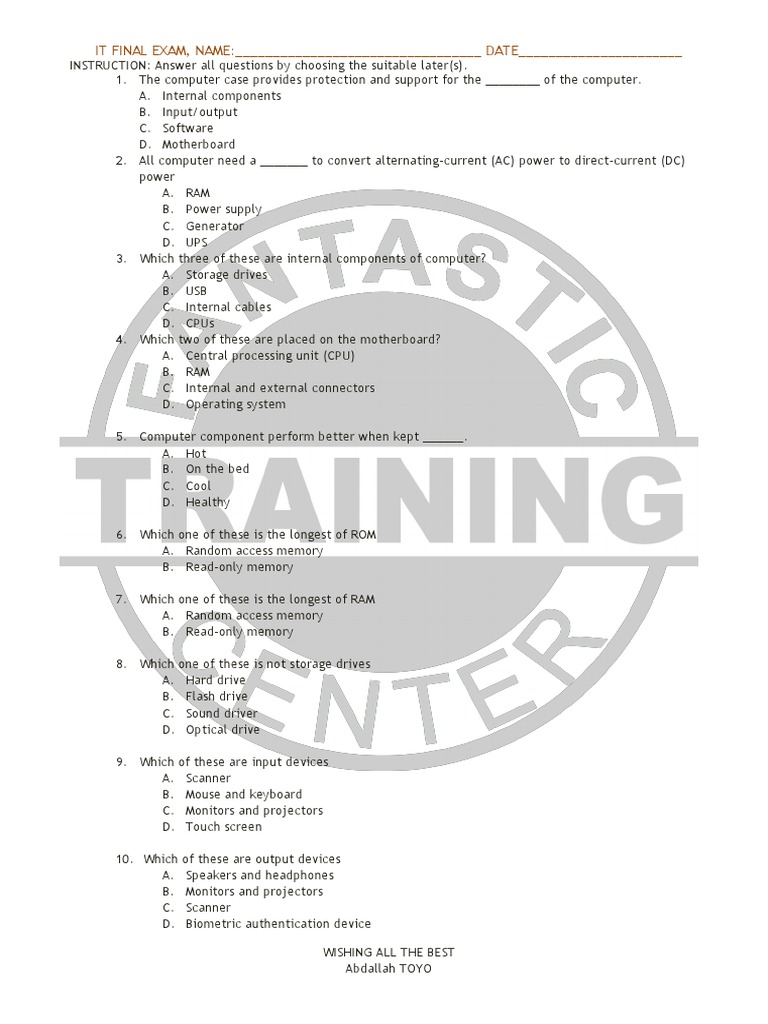 IT FINAL EXAM, NAME:_________________________________ DATE______________________