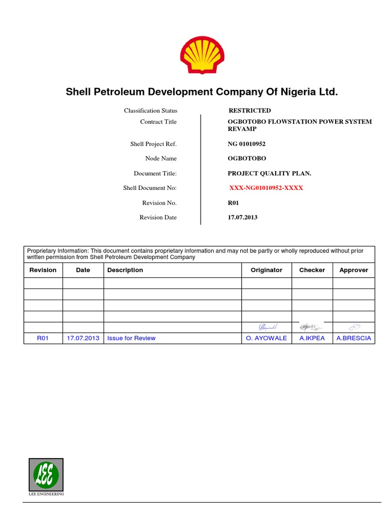 to the required level of quality and in accordance with International Standards and SHELL Standard