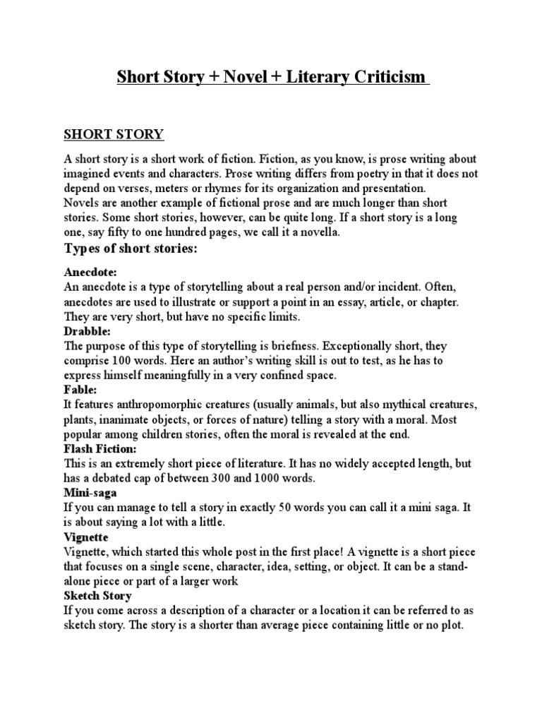 A short story is a short work of fiction. Fiction, as you know, is prose writing about
