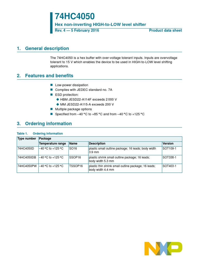 74HC4050 All information provided in this document is subject to legal disclaimers. © NXP Semiconductors N.V. 2016. All rights reserved.