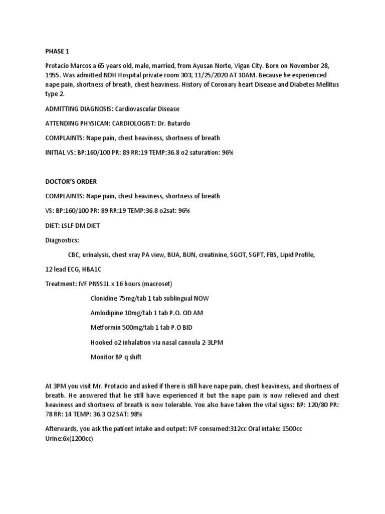 At 3PM you visit Mr. Protacio and asked if there is still have nape pain, chest heaviness, and shortness of
